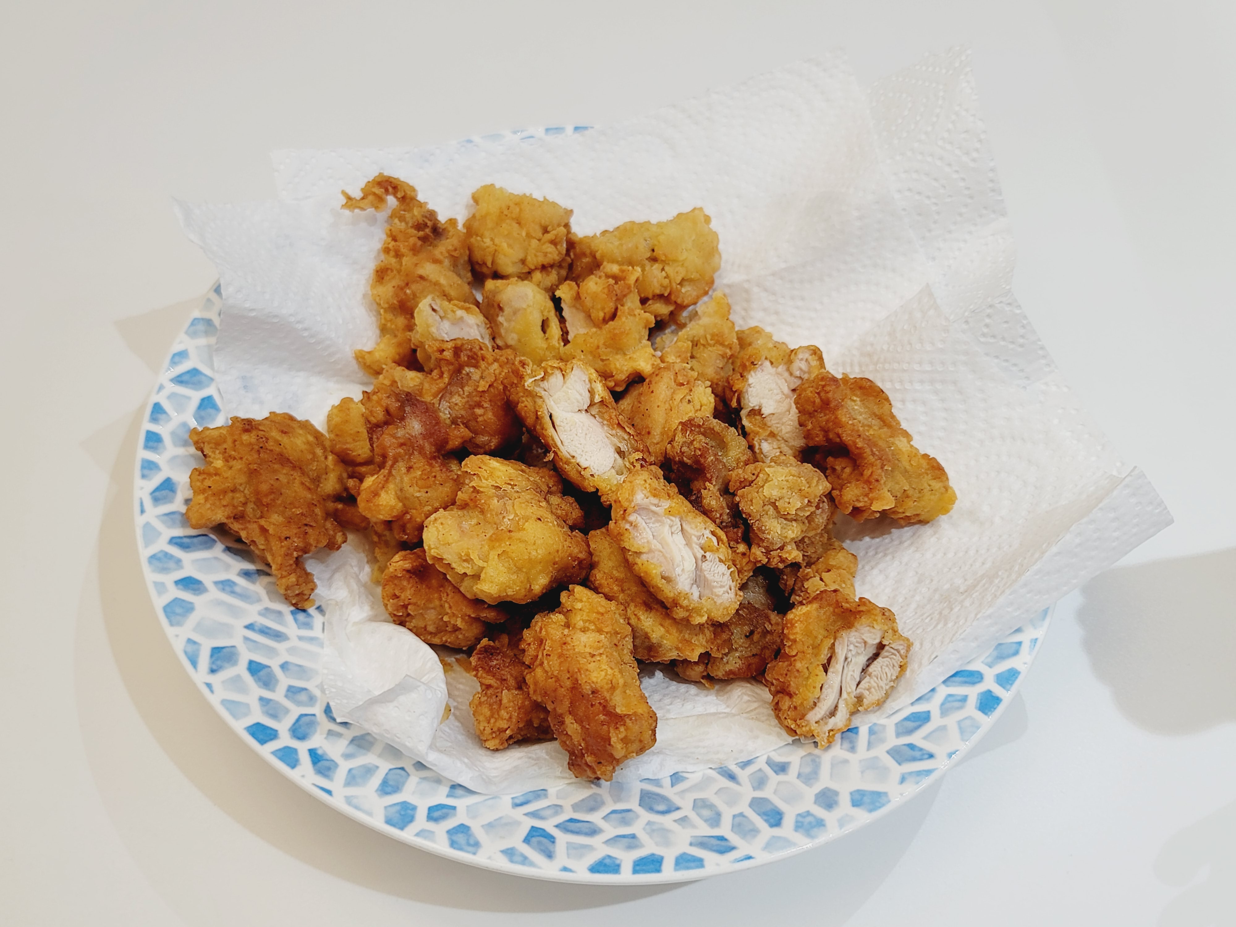 아내의 식탁이 만든 치킨입니다. 라면은 물을 끓이고, 봉지 뜯고, 스프 넣고 끓이면 끝이죠? 치킨도 닭을 자르고, 가루에 물을 섞고, 기름을 끓이고, 기름에 닭을 넣으면 끝입니다.