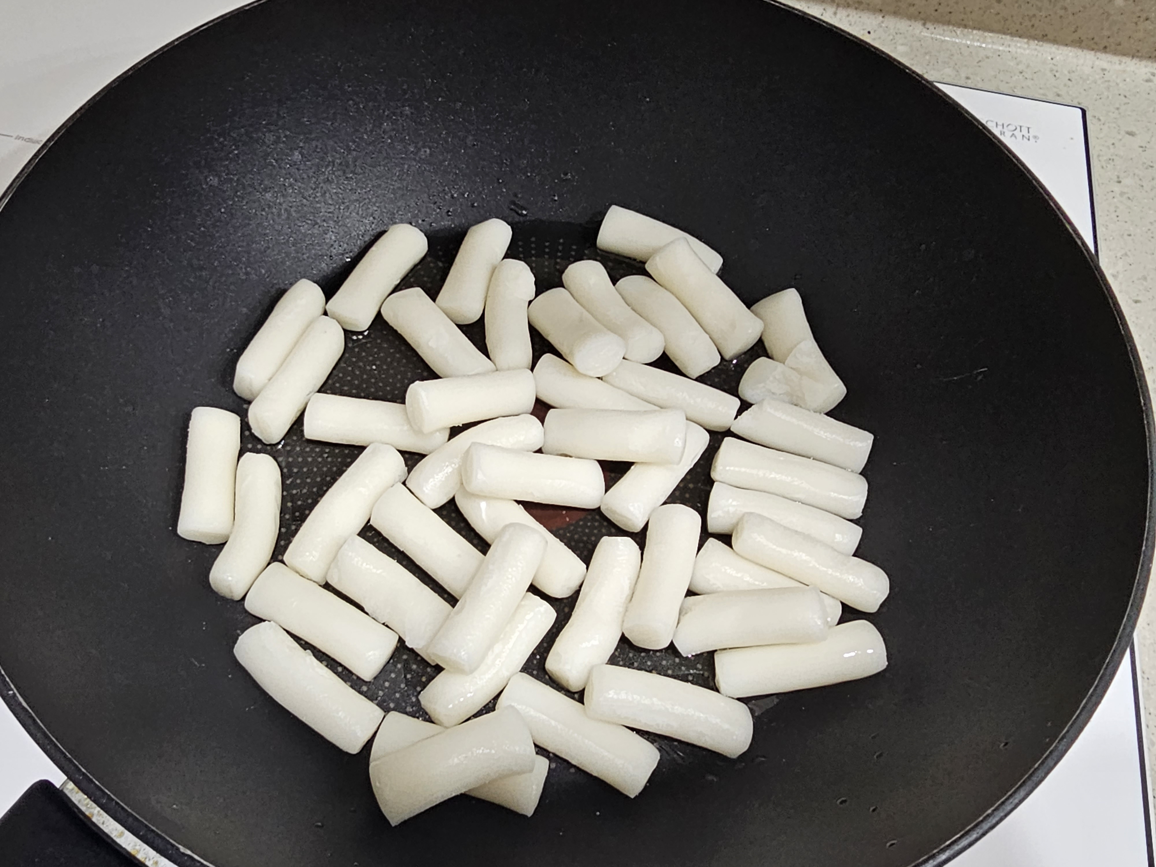 팬에 기름을 붓고 달군 뒤 떡을 넣고 볶아줍니다.