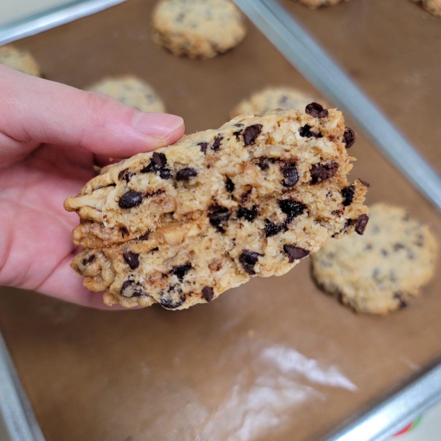 저는 다크초코칩 양이 너무 많은 것 같아서, 초코칩 양을 10~20%정도 줄이고, 오트밀의 양을 10~20%정도 늘려서 만들었는데, 안달고 딱 좋았어요. 호두의 양을 너무 늘렸을 때는 식감이 너무 호두여서 별로였어요. 혹시 재료를 가감하실 분들은 참고해주세요.