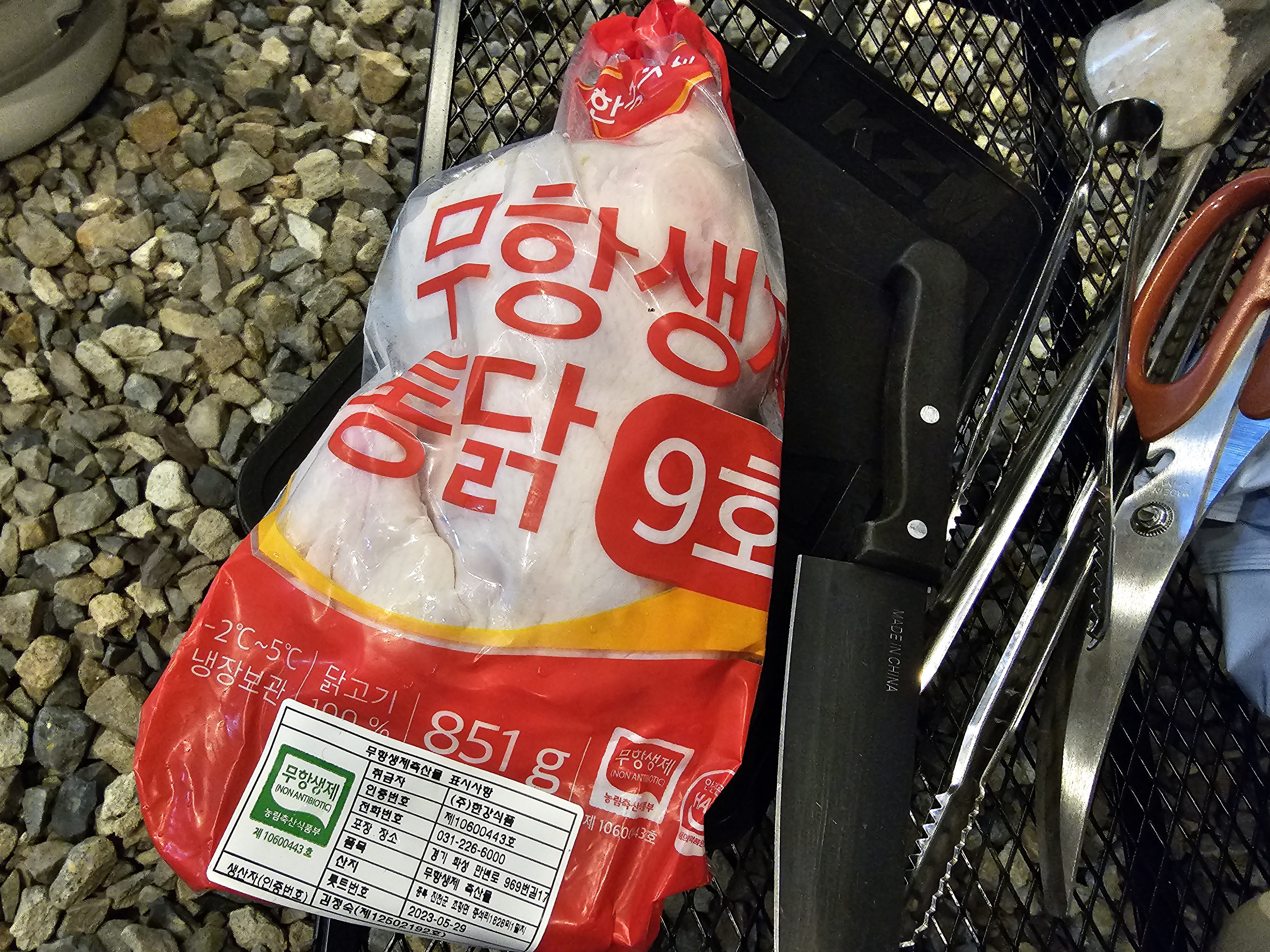 제가 사용한 닭은 통닭 9호입니다. 9호보다 크면 구이를 할 때 잘 안익을 수 있으니 주의해주세요. 9호도 익는데 시간이 꽤나 걸려, 더 작은 호수의 통닭도 괜찮을 것 같다고 생각했어요.